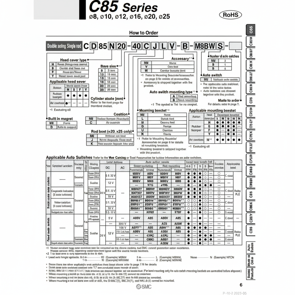 กระบอกลมนิวเมติก SMC C85N10-25ชิ้นส่วนนิวเมติก