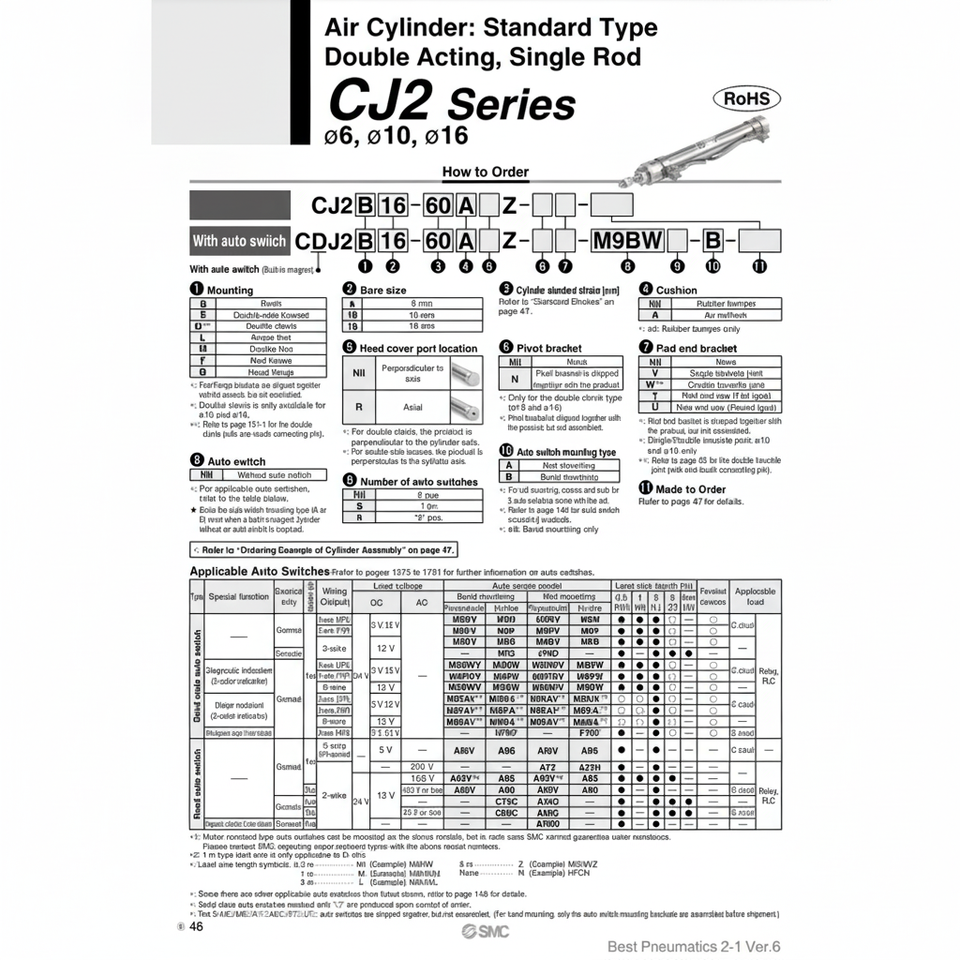 CDJ2E16-175Z-B กระบอกลมนิวเมติก SMC
