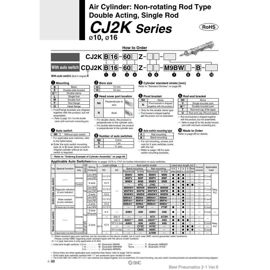 กระบอกลมนิวเมติก SMC CDJ2KB10-30Z-B ชิ้นส่วนนิวเมติก