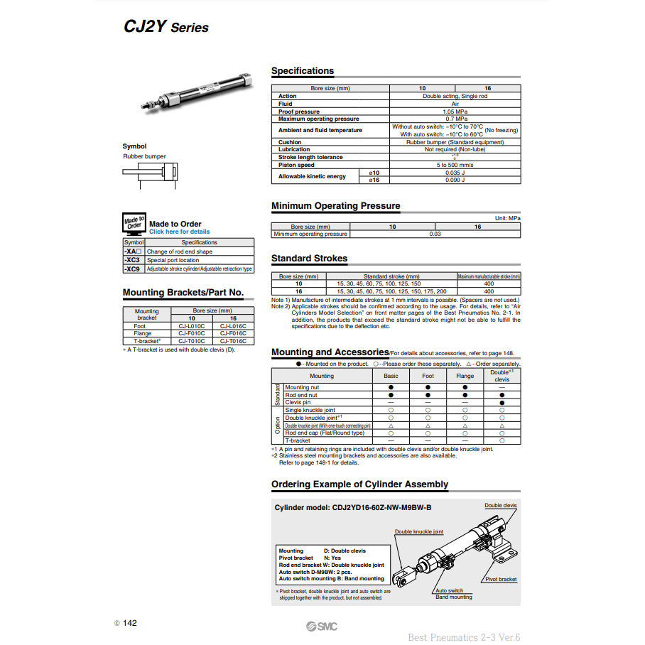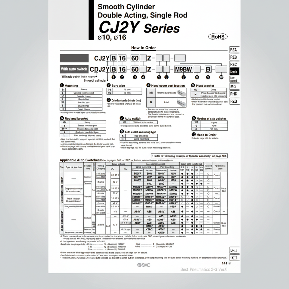 กระบอกลมนิวเมติก SMC CDJ2YB16-45Z-B ชิ้นส่วนนิวเมติก