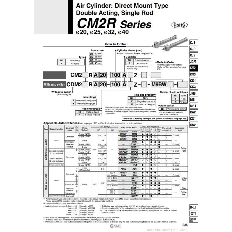 กระบอกลมนิวเมติก SMC CDM2RB20-125Z ชิ้นส่วนนิวเมติก