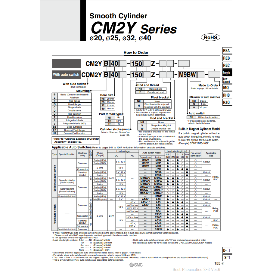 กระบอกลมนิวเมติก SMC CDM2YC20-200Z ชิ้นส่วนนิวเมติก
