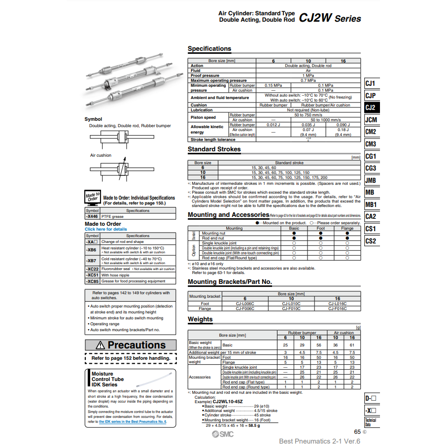 กระบอกลมนิวเมติก SMC CJ2WF10-150Z ชิ้นส่วนนิวเมติก