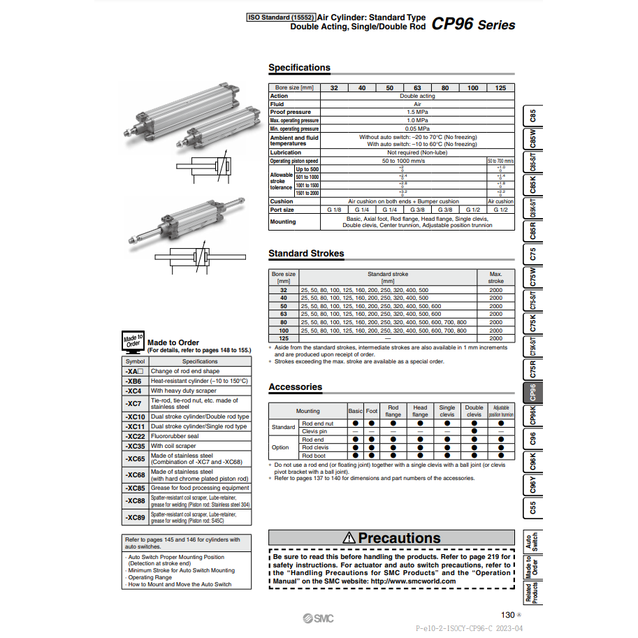 กระบอกลมนิวเมติก SMC CP96SDC63-160C ชิ้นส่วนนิวเมติก