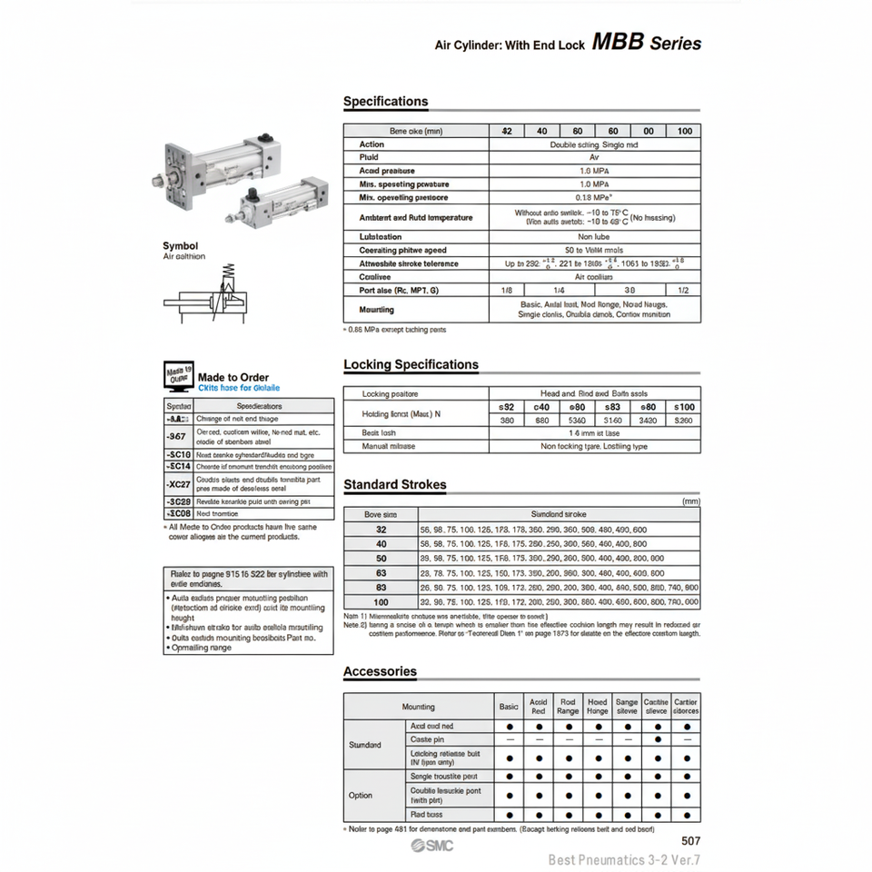 กระบอกลมนิวเมติก SMC MBBF40TF-200-HN กระบอกลมคุณภาพสูง