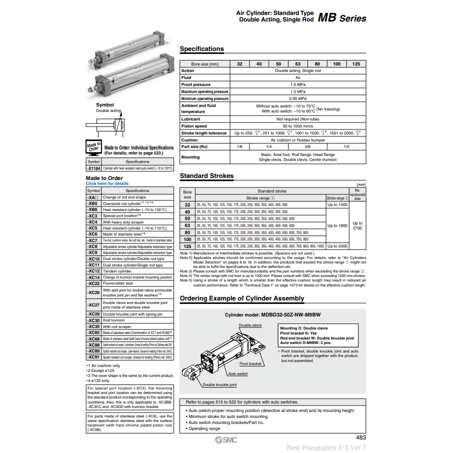 กระบอกลมนิวเมติก SMC MDBB100-400Z ชิ้นส่วนนิวเมติก