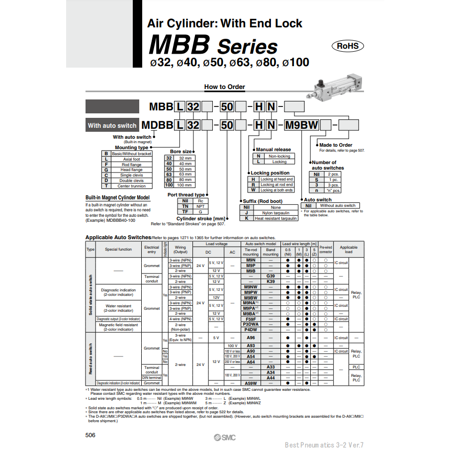 MDBBB32-200-HN รุ่นกระบอกลมนิวเมติก SMC
