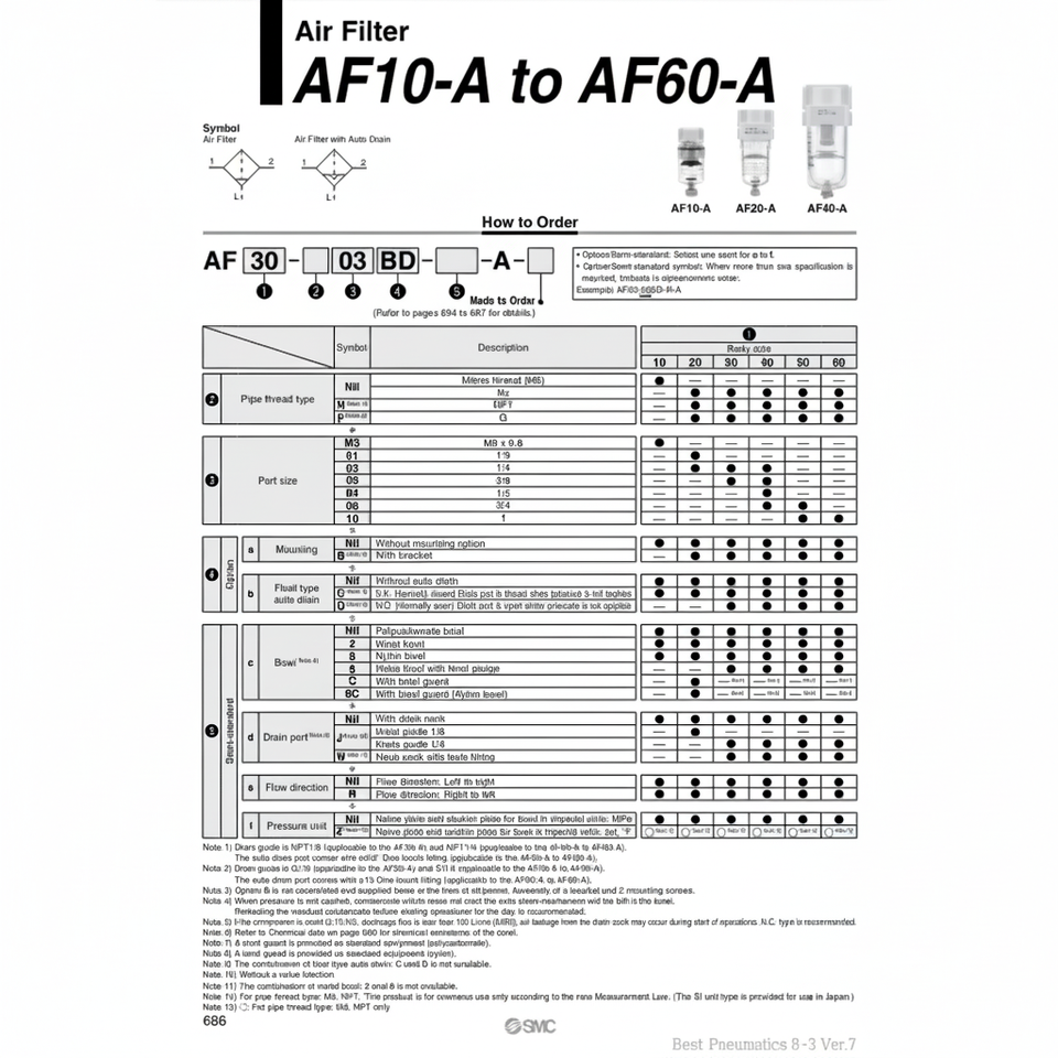 AF40-03-A กรองอากาศนิวเมติก SMC