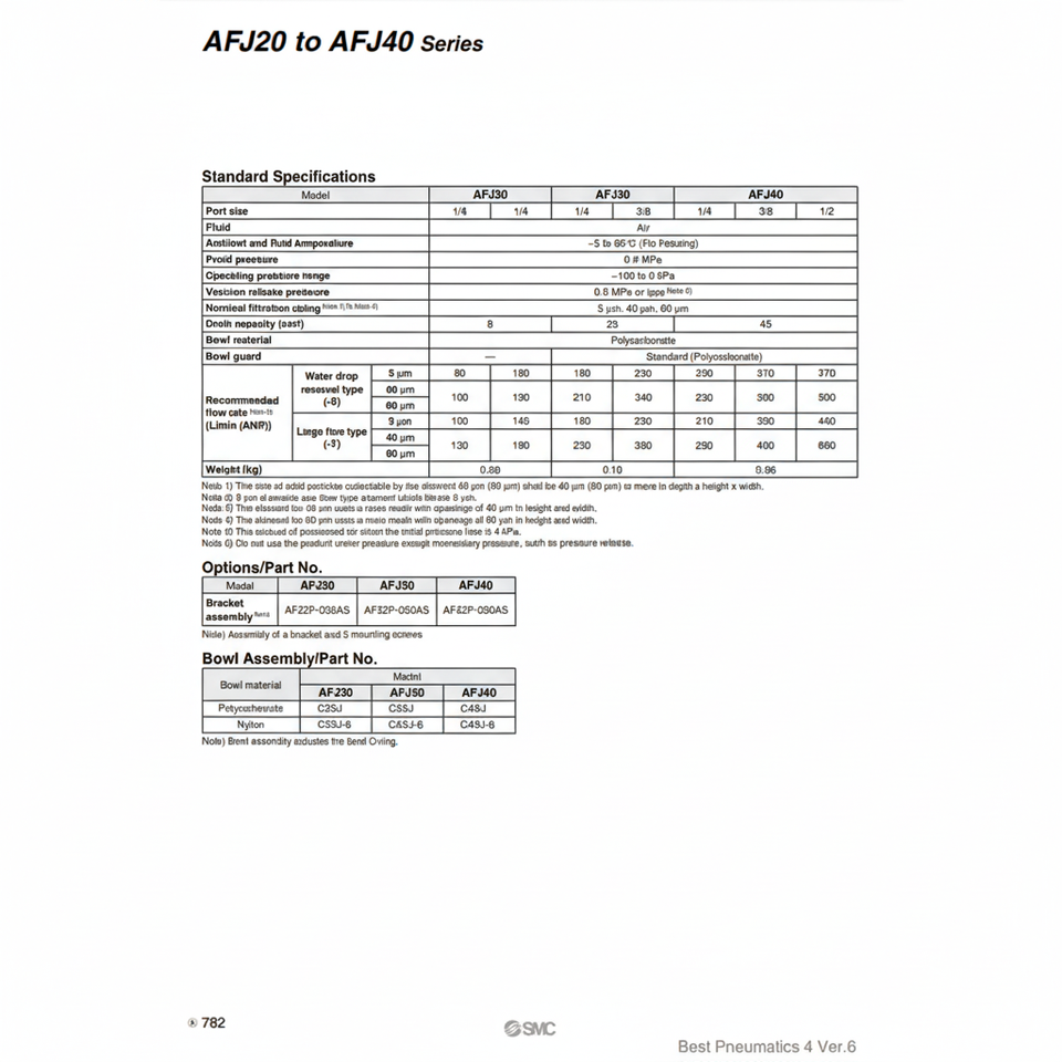 AFJ40-04B-40-T-6กรองอากาศแบบนิวเมติกส์ SMC