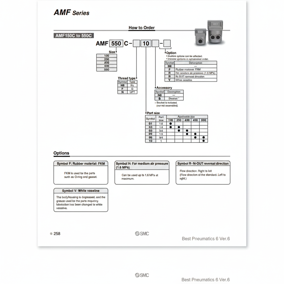 เครื่องกรองอากาศแบบนิวเมติก SMC AMF650-10กรองกำจัดกลิ่น