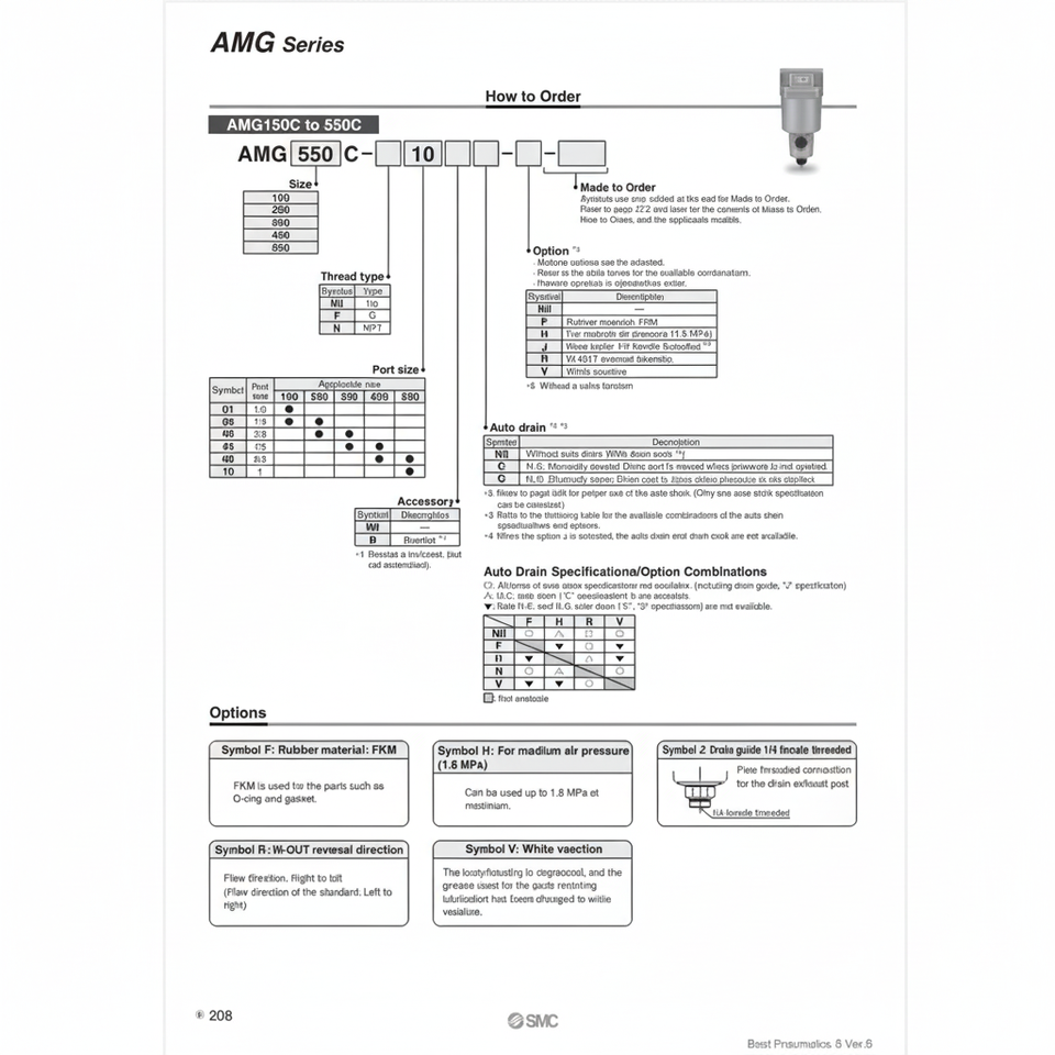 เครื่องกรองอากาศแบบนิวเมติก SMC AMG150C-01BC เครื่องแยกน้ำ