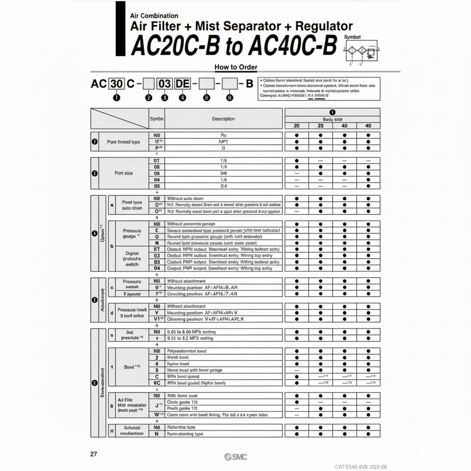 AC30C-03E-B รวมแผ่นกรองอากาศนิวเมติก SMC