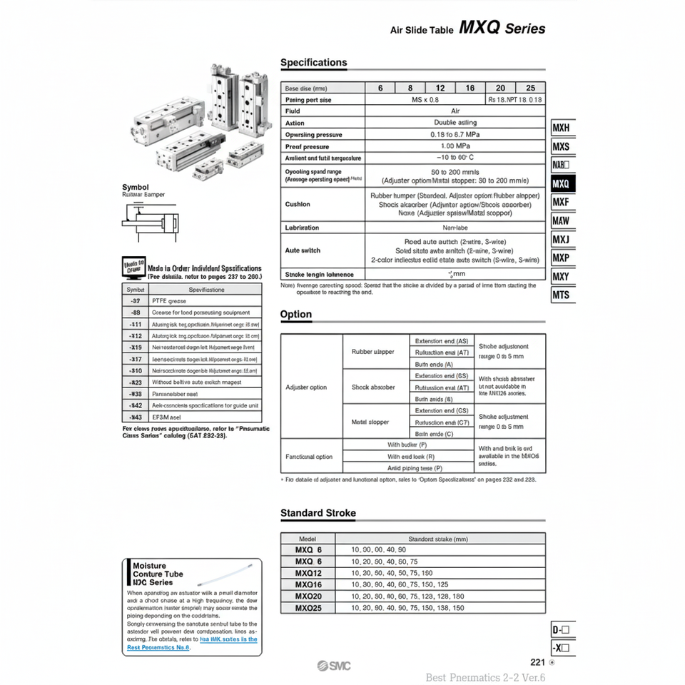 MXQ16L-50B โต๊ะสไลด์ลมนิวเมติก SMC