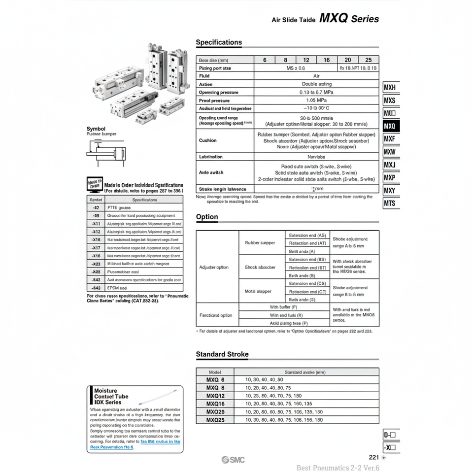 MXQ20-100BSAT ตั้งโต๊ะสไลด์ลมนิวเมติก SMC