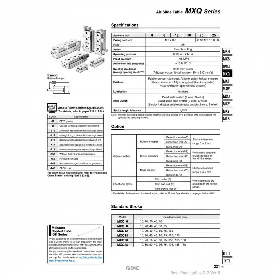 โต๊ะสไลด์แบบนิวเมติก SMC อุปกรณ์จัดการวัสดุ MXQ20-100AT