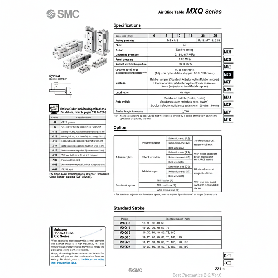 MXQ25-50BS โต๊ะสไลด์ลมนิวเมติก SMC