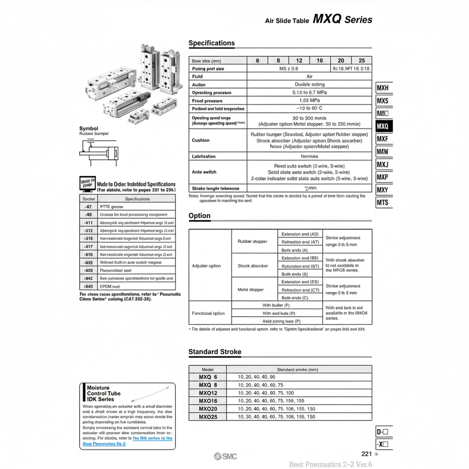 MXQ25-150ASBT โต๊ะสไลด์ลมนิวเมติก SMC
