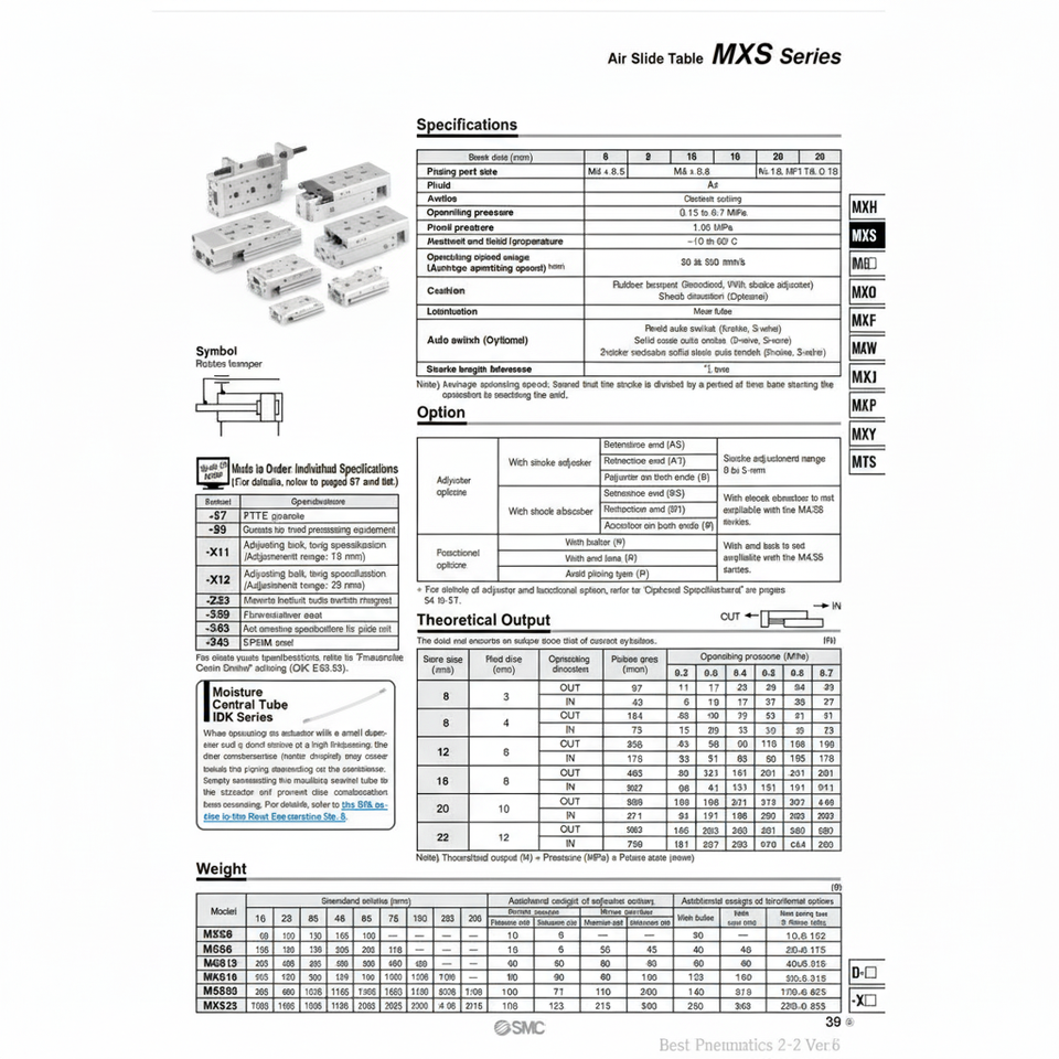โต๊ะสไลด์ลมแบบนิวเมติก SMC MXS20-150ชิ้นส่วนนิวเมติกส์คุณภาพสูง
