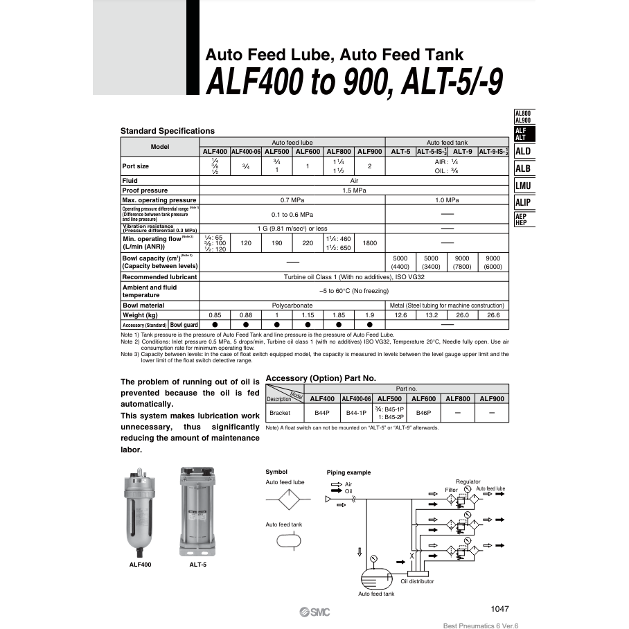 ชิ้นส่วนนิวเมติกสำหรับน้ำมันหล่อลื่น ALF800-14นิวเมติก SMC