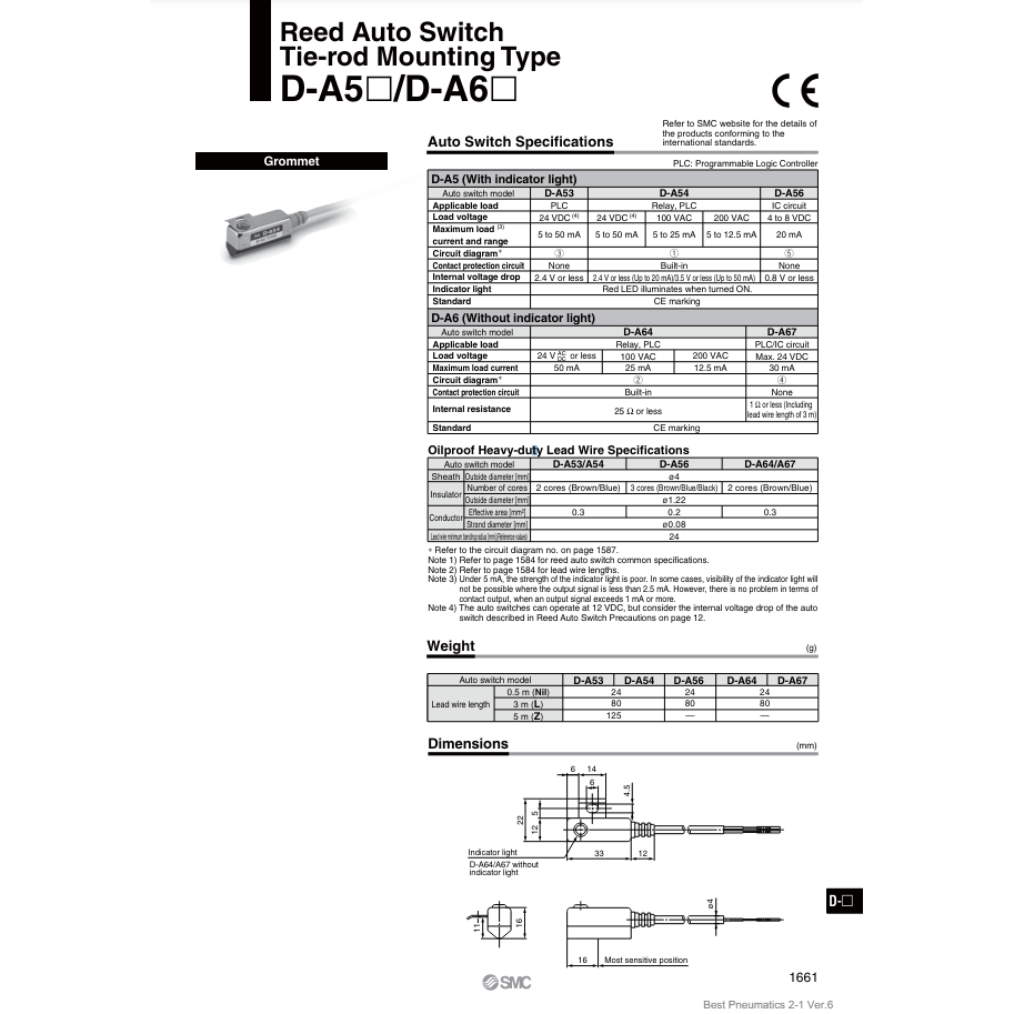 ประเภทผลิตภัณฑ์สวิตช์ไฟ D-A54Z อัตโนมัติแบบนิวเมติก SMC