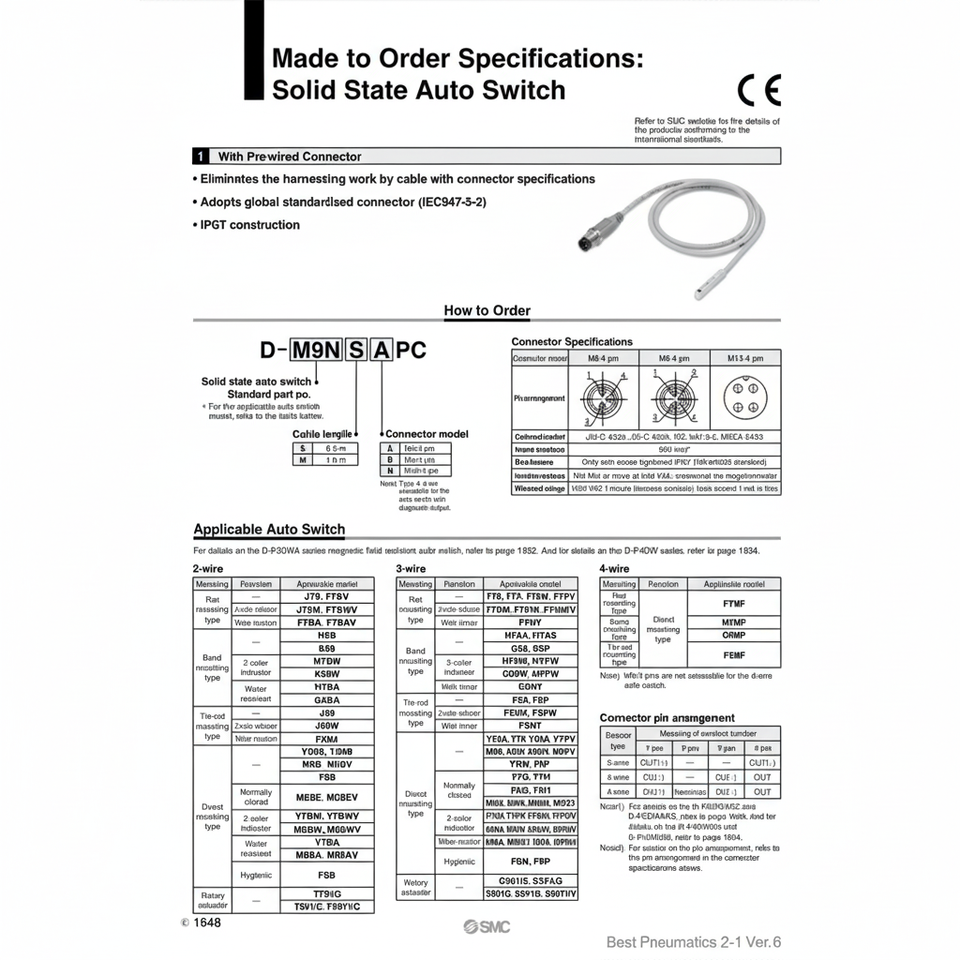 SMC นิวเมติกส์สวิตช์อัตโนมัติชุด D-M9BSAPC เซ็นเซอร์และชุดสายเคเบิล