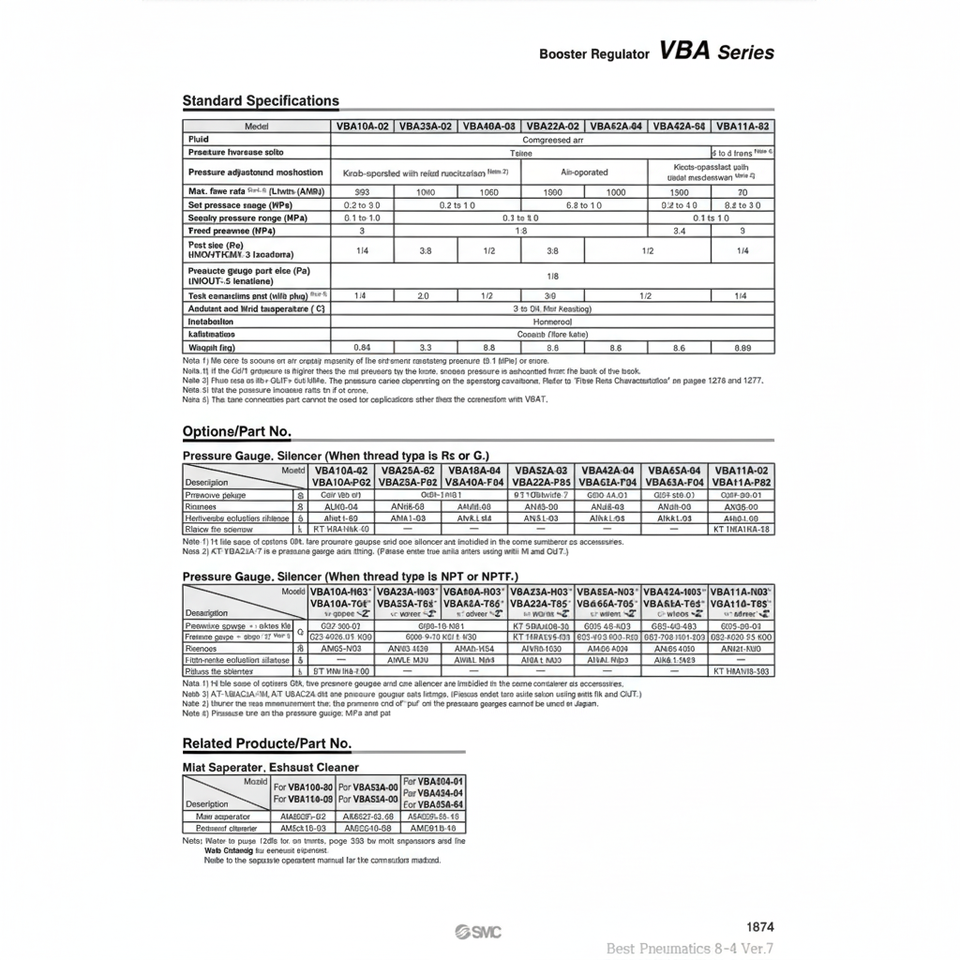 ตัวควบคุมบูสเตอร์นิวเมติก SMC VBA11A-02GN เครื่องควบคุมแรงดันคุณภาพสูง