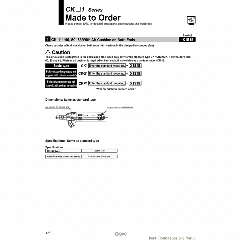 กระบอก CKG1A63-100YAZ-P นิวเมติก SMC