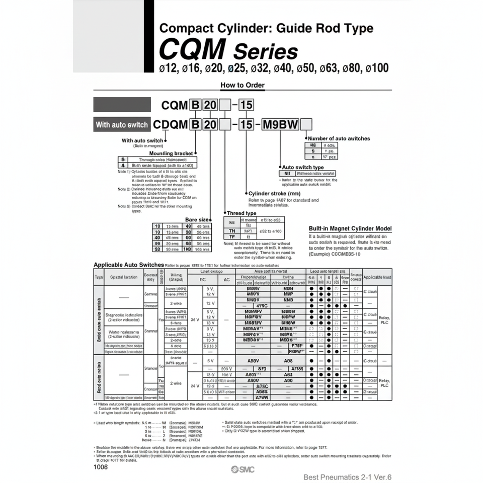 กระบอกลมคอมแพคผลิตจาก CDQMB12-20ชิ้นส่วนนิวเมติก SMC