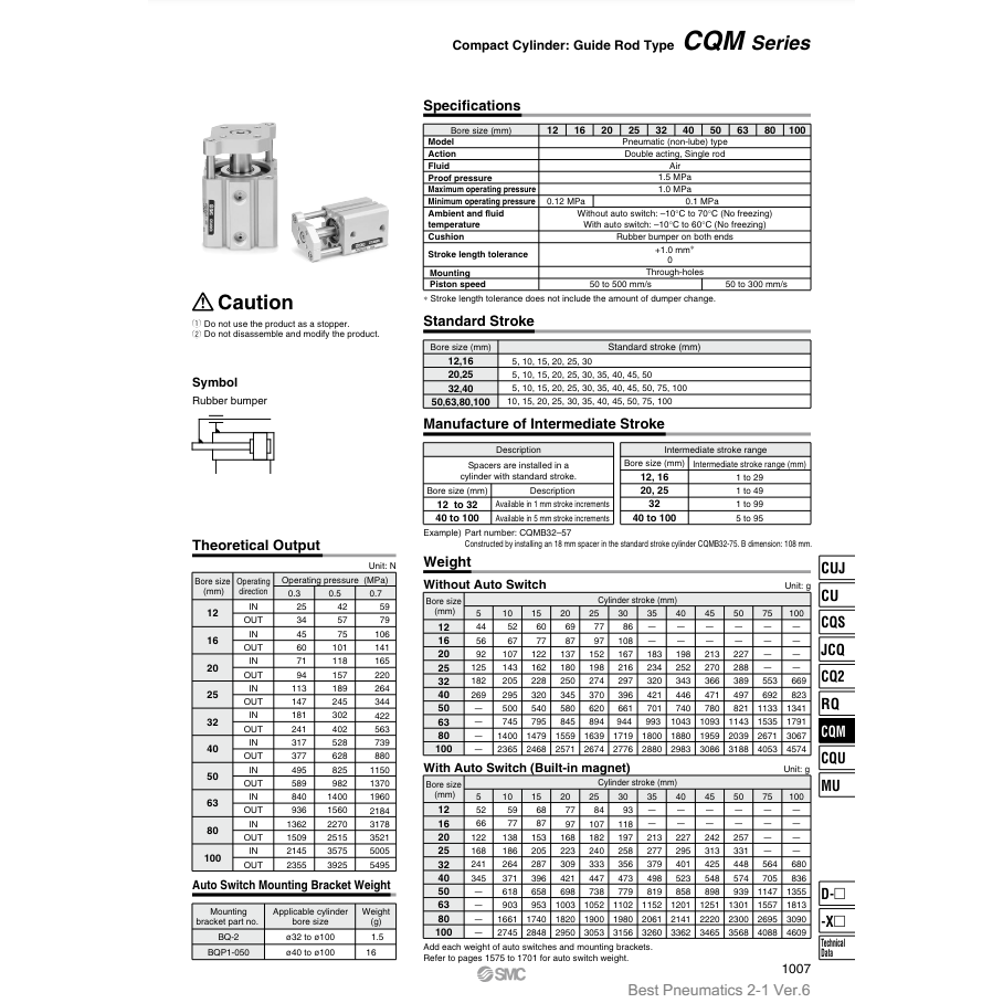 กระบอกลมคอมแพคขนาดกะทัดรัด CDQMB20-25ชิ้นส่วนนิวเมติก SMC