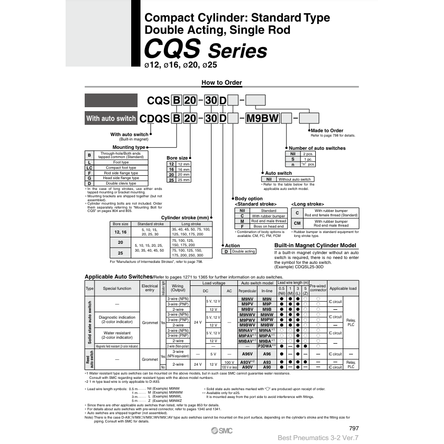กระบอกลมคอมแพคผลิตจาก CDQSD25-20DM ชิ้นส่วนนิวเมติก SMC