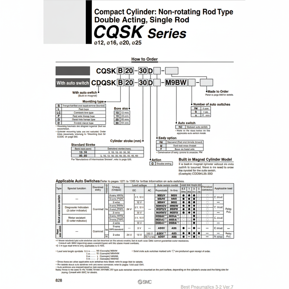 กระบอกลมคอมแพคขนาดกะทัดรัด CDQSKB12-10D ชิ้นส่วนนิวเมติก SMC