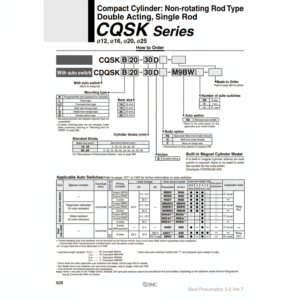 กระบอกลมคอมแพคขนาดกะทัดรัด CDQSKB12-20D ชิ้นส่วนนิวเมติก SMC