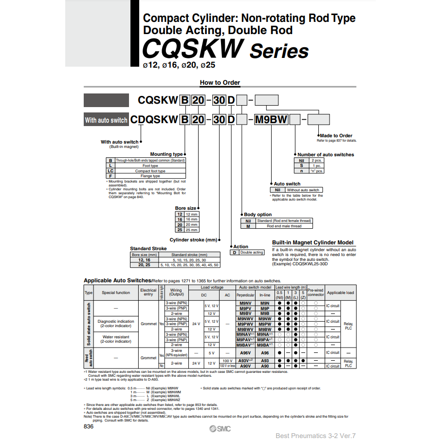 กระบอกลมขนาดกะทัดรัด CDQSKWB20-10D ชิ้นส่วนนิวเมติก SMC