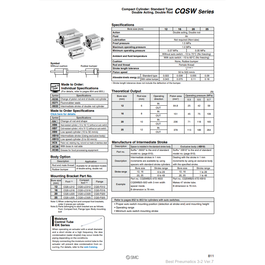 กระบอกลมขนาดกะทัดรัด CDQSWB16-5D ชิ้นส่วนนิวเมติก SMC