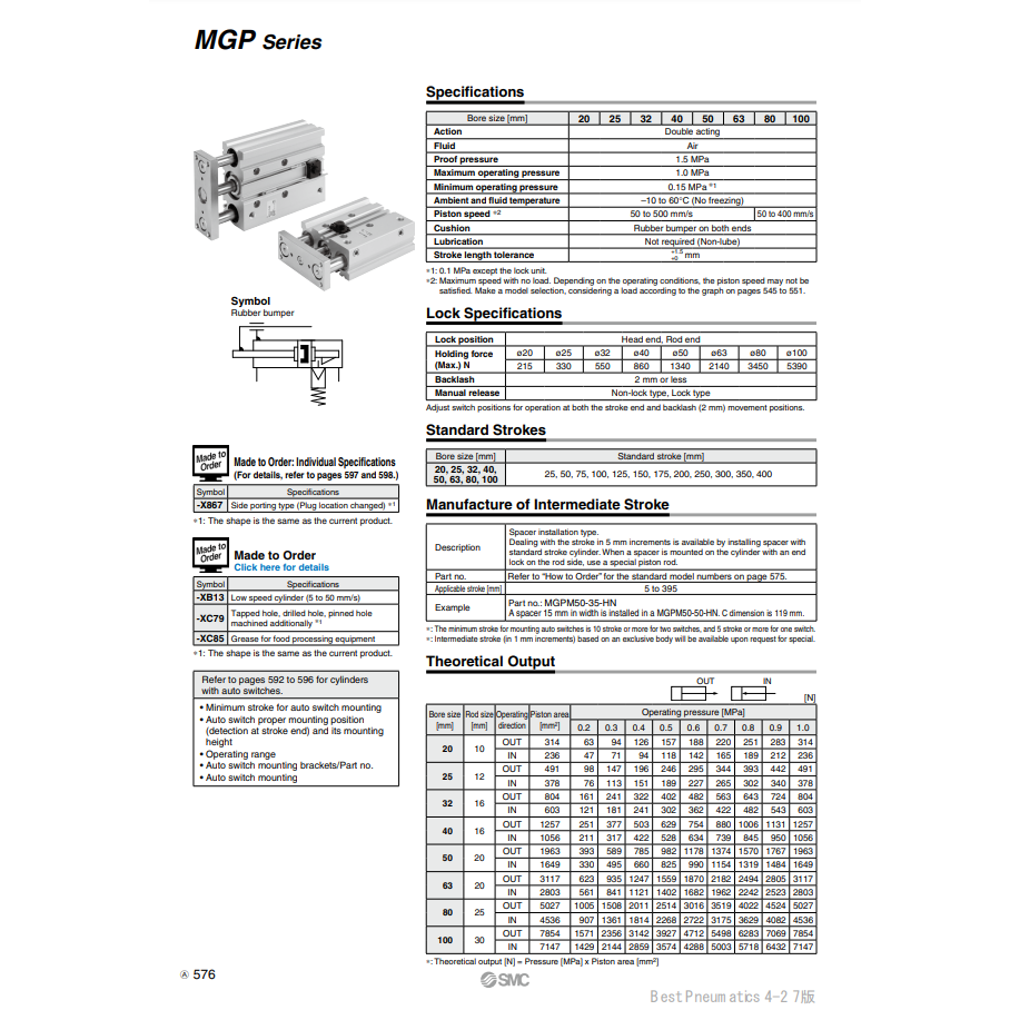 กระบอกลมคอมแพคขนาดกะทัดรัด MGPM25-75-RN ชิ้นส่วนนิวเมติก SMC