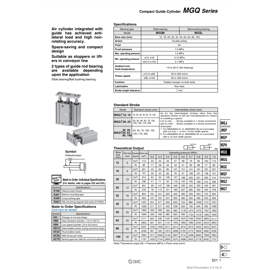 กระบอก MGQM32-50แบบพกพา SMC pneumatics
