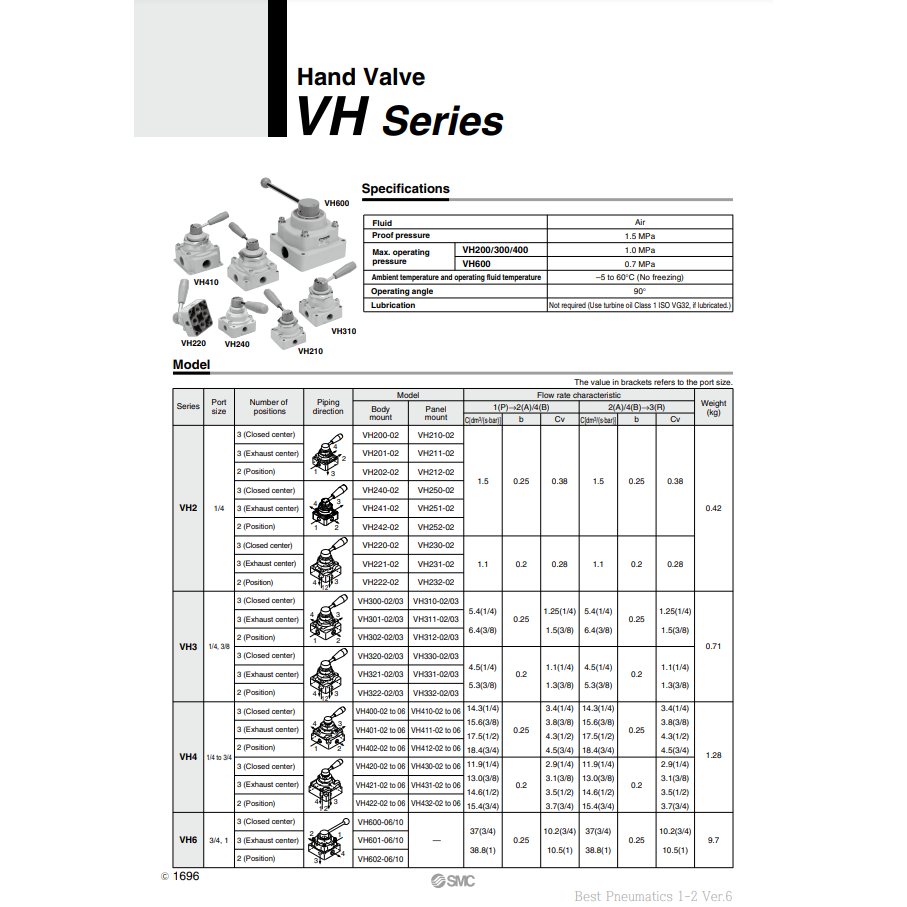 วาล์วควบคุมนิวเมติก SMC VH211-02วาล์วมือ