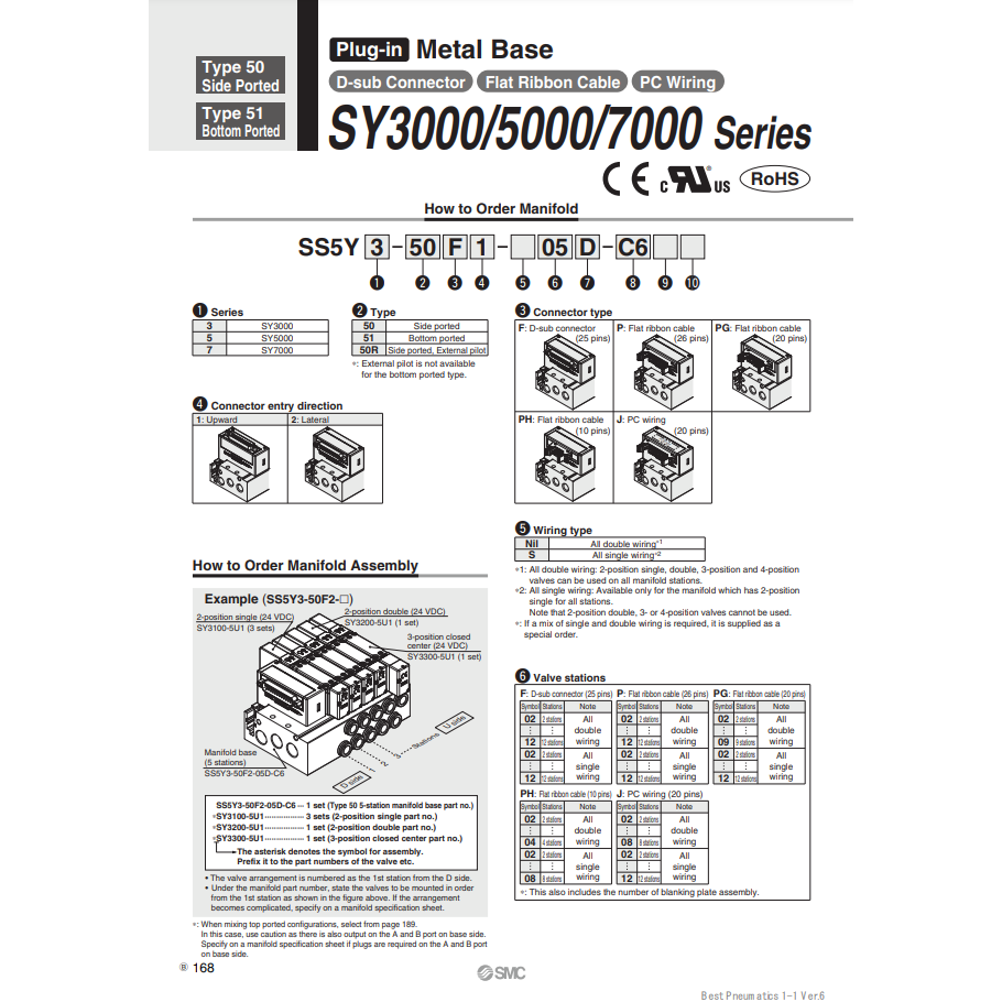 SMC นิวเมติกส์ควบคุมวาล์วหลากหลายรูปแบบ SS5Y3-50PG2-06D-C4