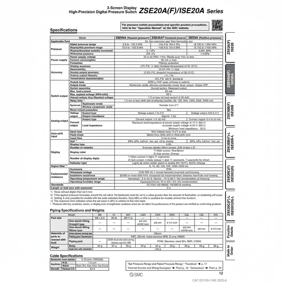สวิตช์ความดันดิจิตอลนิวเมติก ISE20A-V-01-JD SMC