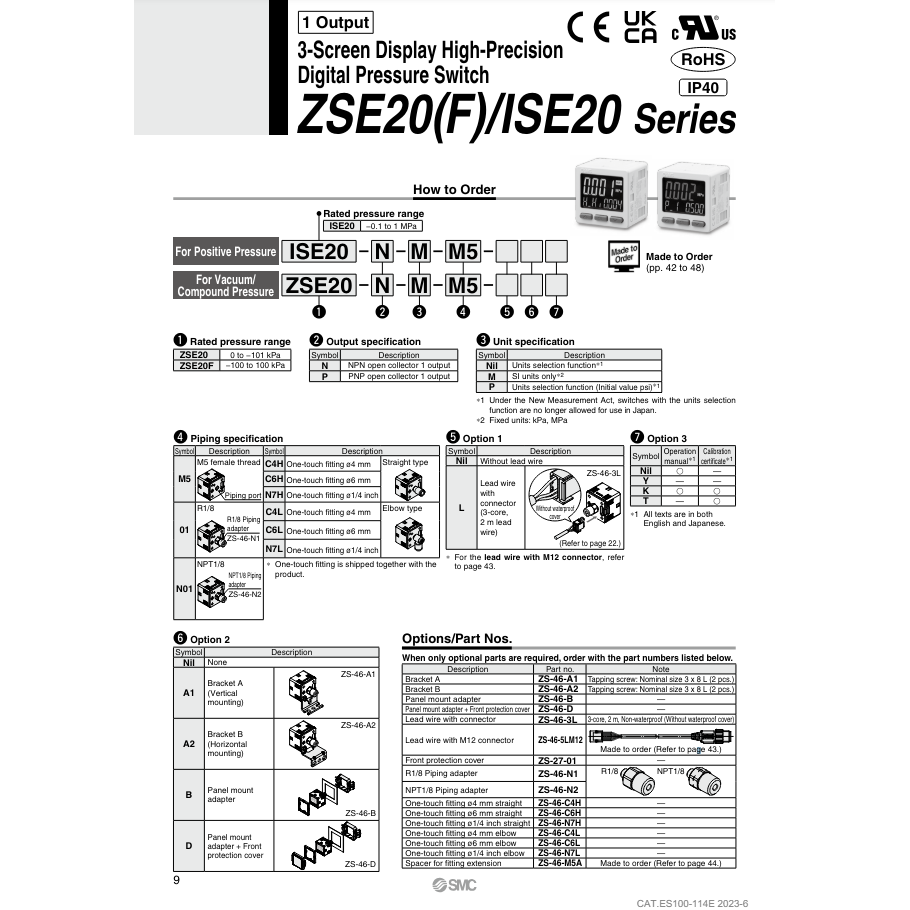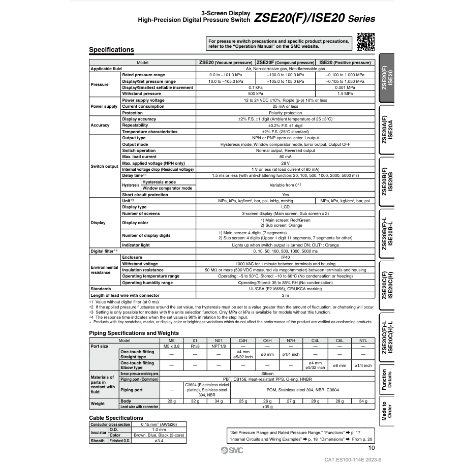 สวิตช์ความดันดิจิตอลนิวเมติก ISE20-N-01-LA1 SMC