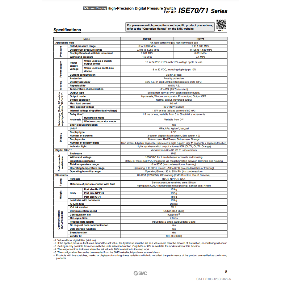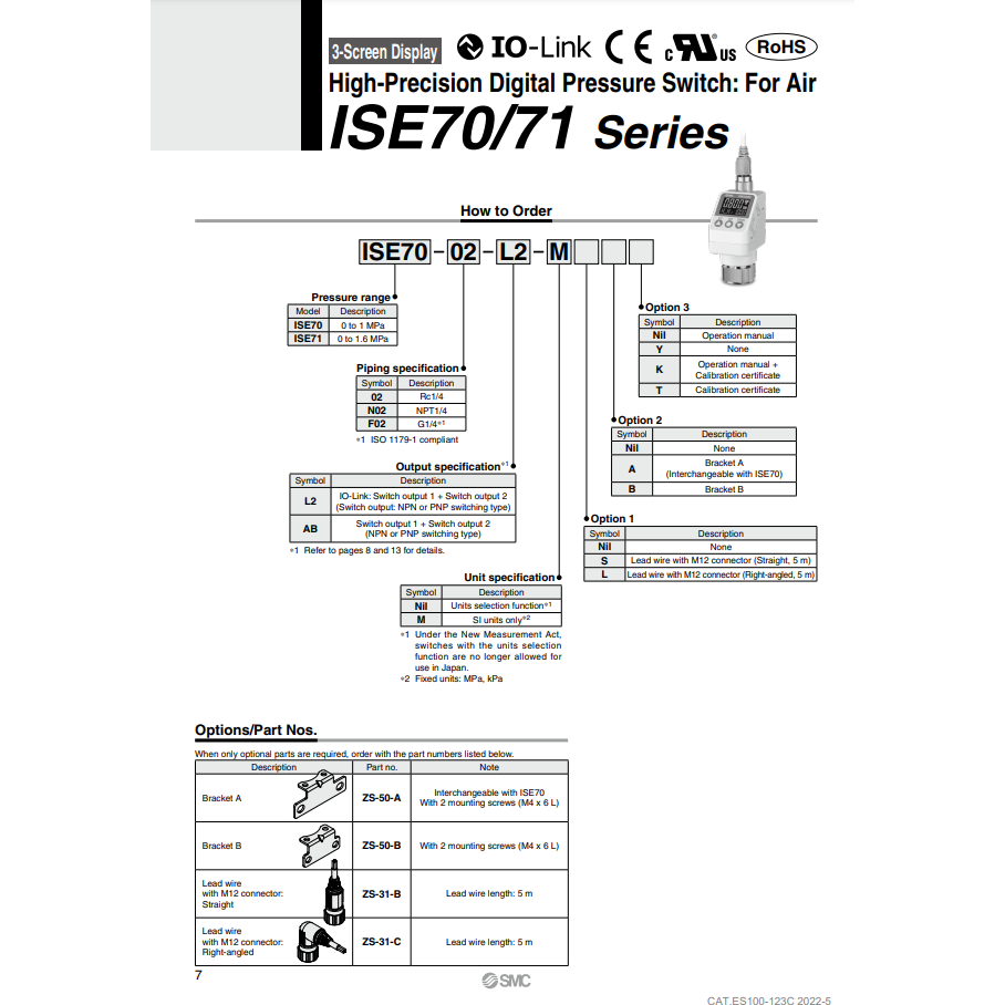 สวิตช์ความดันแบบดิจิตอลสำหรับระบบนิวเมติก SMC ISE70-02-L2-ML