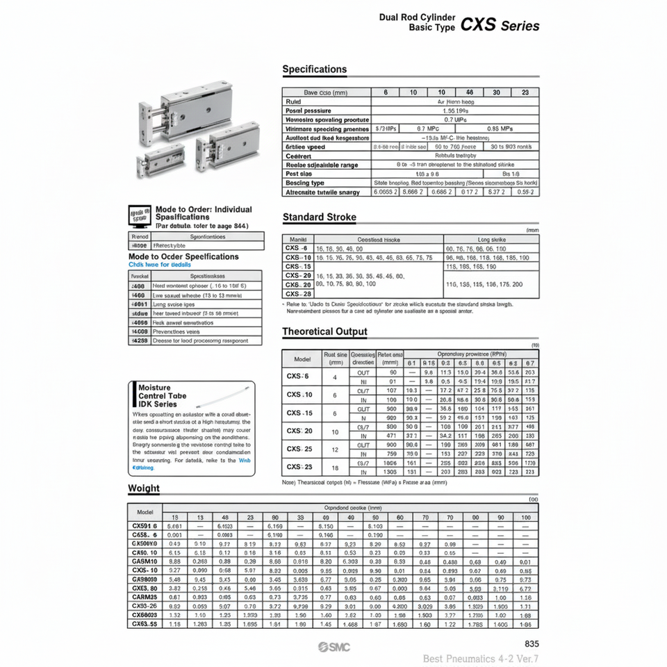 กระบอกลมสองก้าน CXSL10-75ชิ้นส่วนนิวเมติก SMC