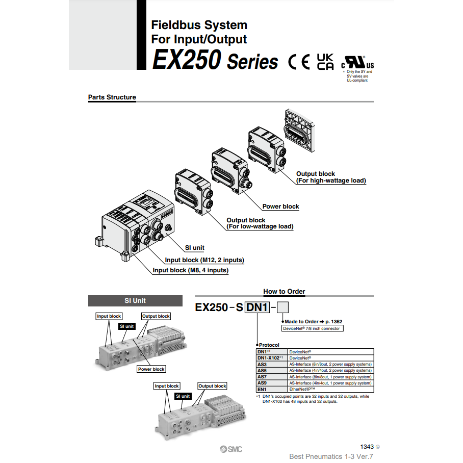 SMC pneumatics ระบบ Fieldbus EX250-SDN1สำหรับ input และ output (Io)