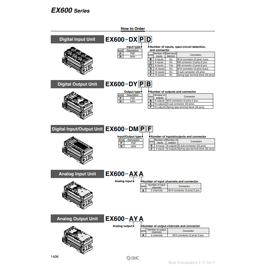 SMC Pneumatics EX600-DXPC Fieldbus System for Input and Output (IO)