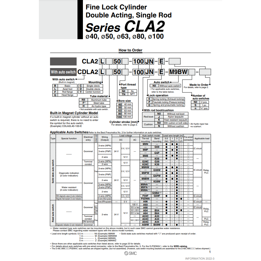 ระบบนิวเมติกส์ SMT CDLA2B50-650-D ล็อคแบบละเอียด