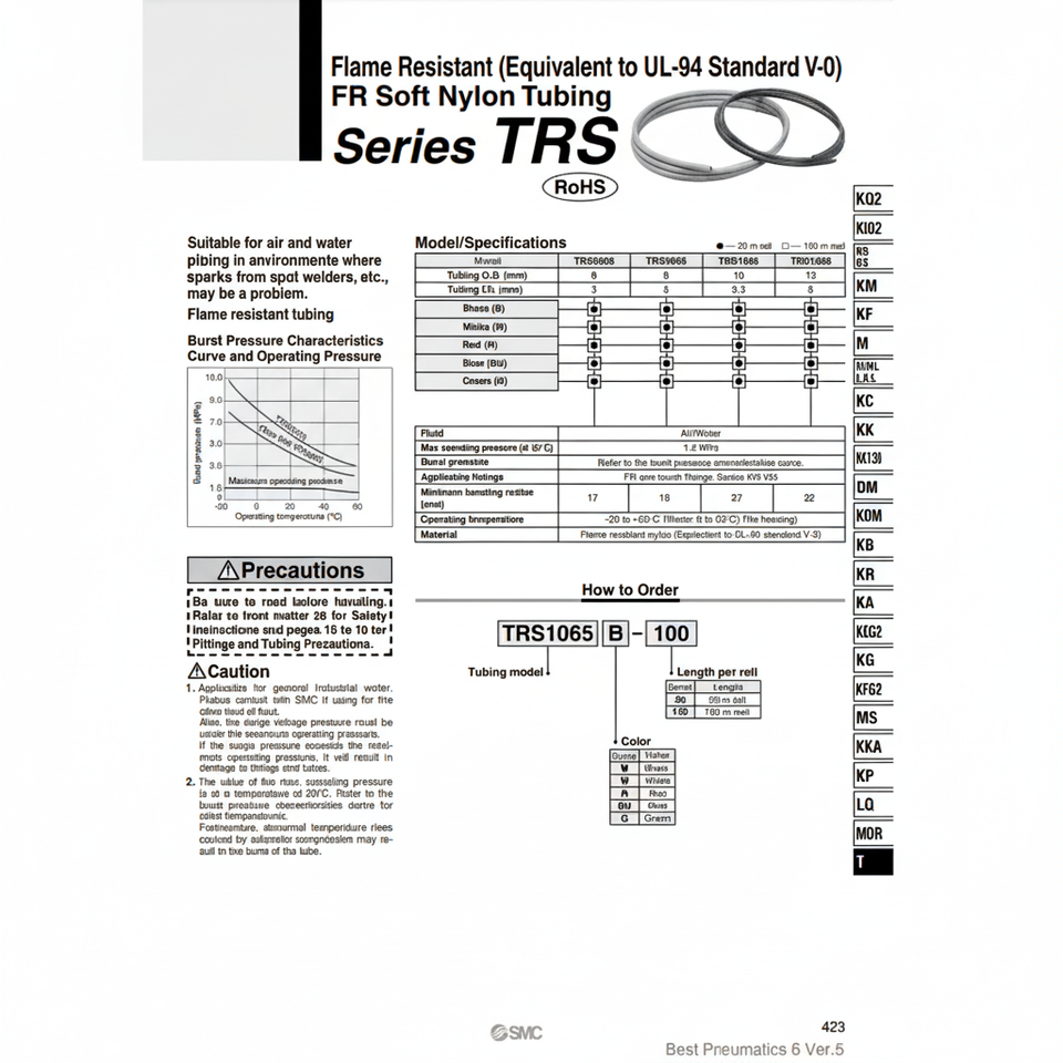 TRS1208W-20วัสดุกันไฟนิวเมติกส์จากท่อไนล่อนแบบนิ่มทนต่อการติดไฟวัสดุกันไฟ
