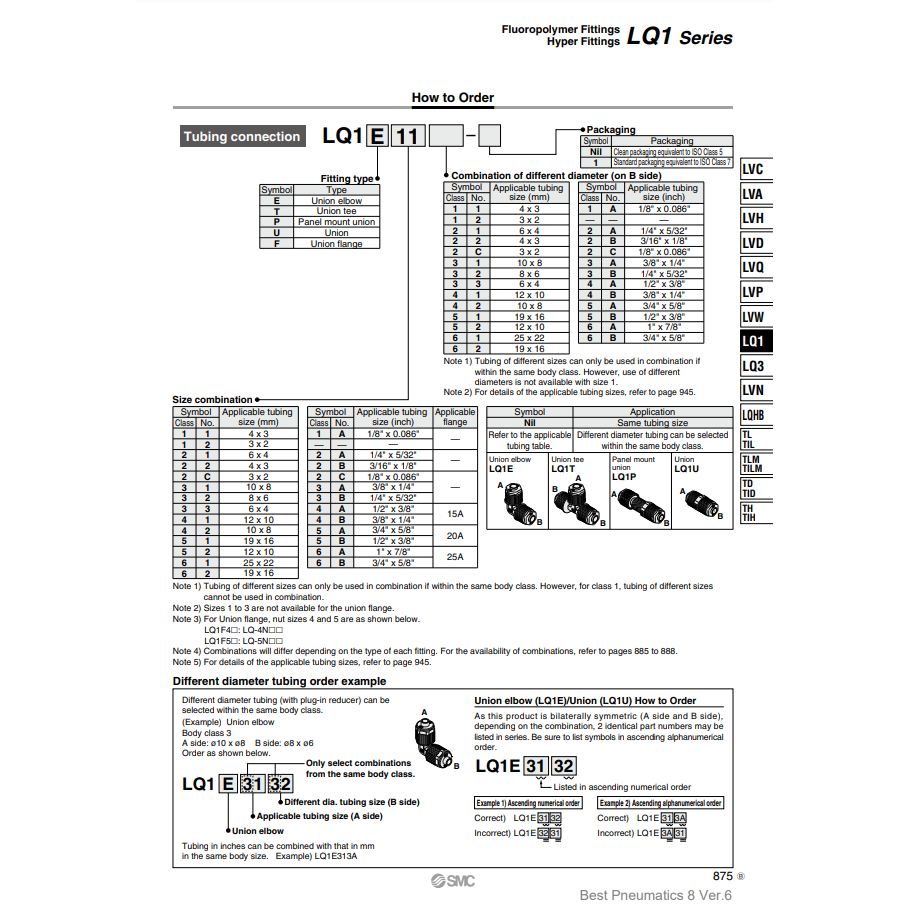 ข้อต่อฉีดฟลูออโรโพลีเมอร์นิวเมติก LQ1B3C-M ชิ้นส่วนนิวเมติก