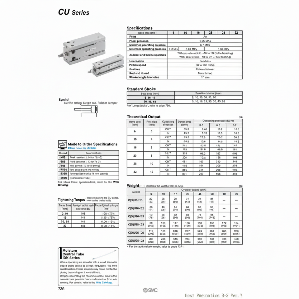 กระบอกลมยึดฟรีนิวเมติก CDU10-60D ชิ้นส่วนนิวเมติก SMC