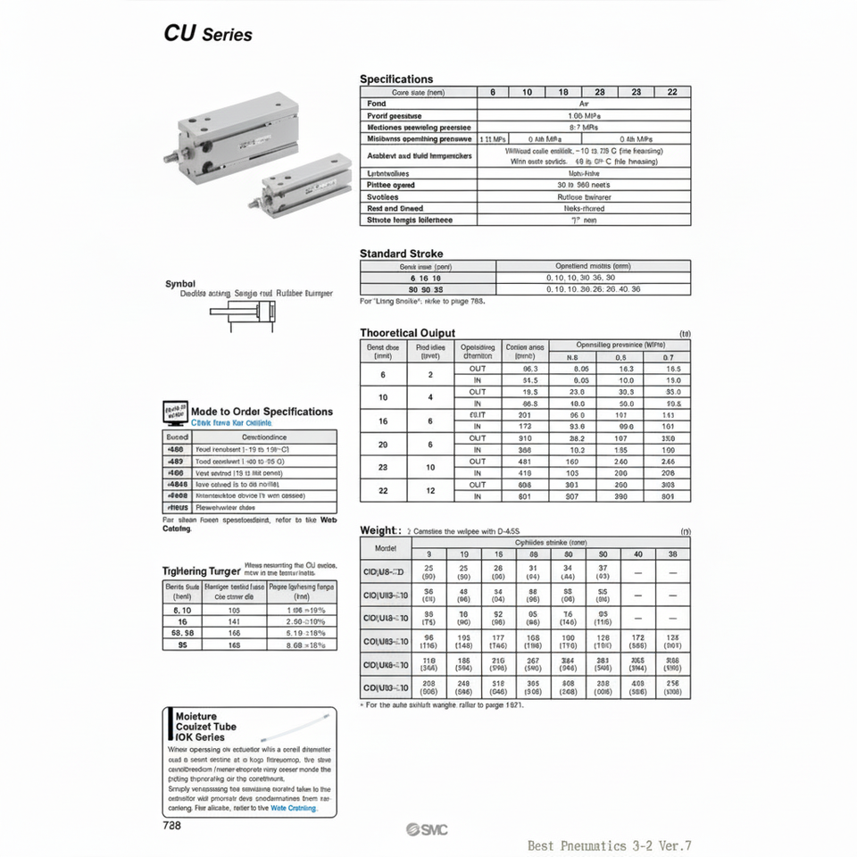 กระบอกลมยึดฟรีนิวเมติก SMC CDU10-10D ชิ้นส่วนนิวเมติก