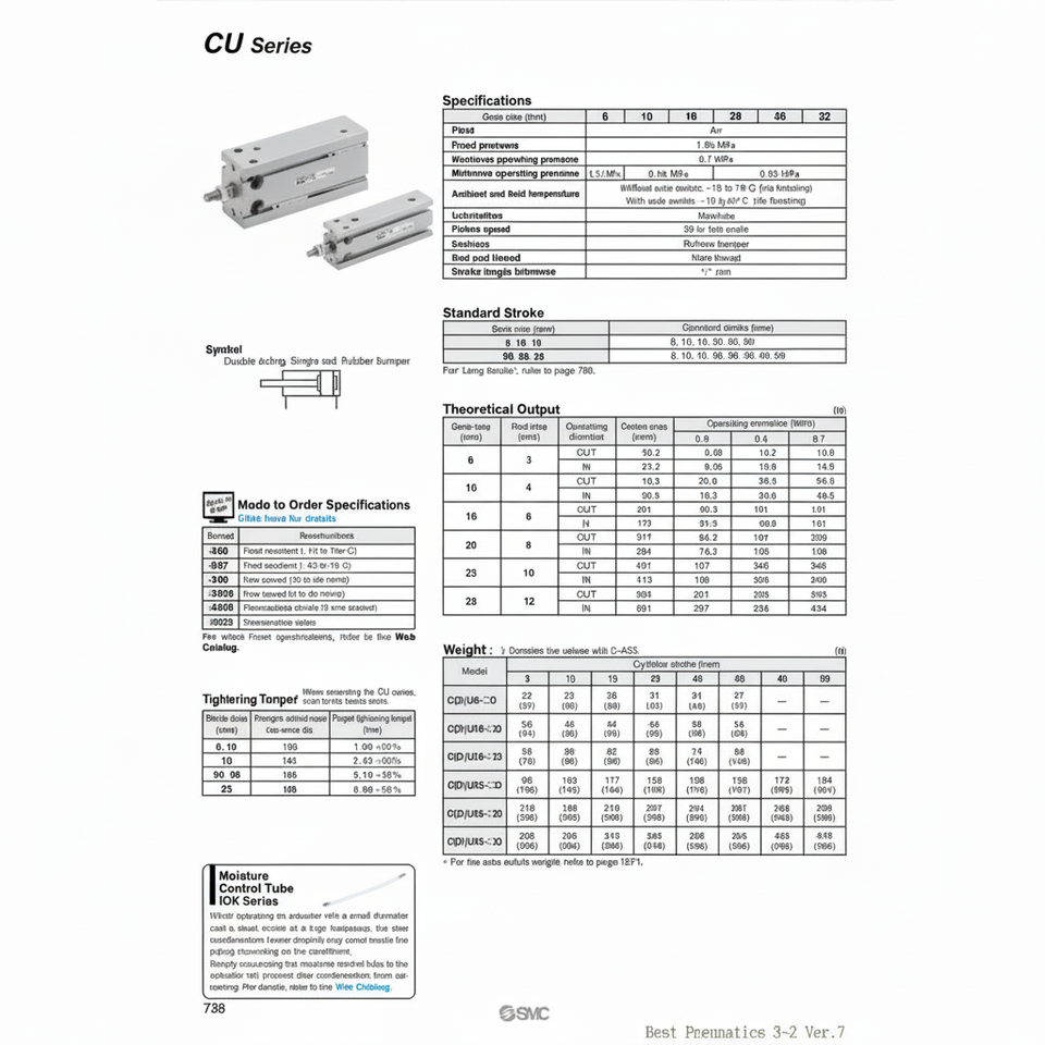 กระบอกลมยึดฟรีนิวเมติก SMC CDU16-40D ชิ้นส่วนนิวเมติก